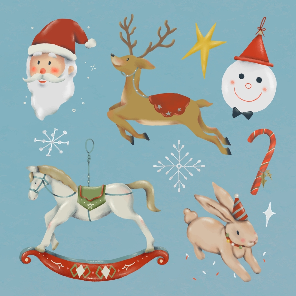 Free Christmas doodle sticker set, cute doodle illustration vector